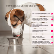 Perfect for picky eaters or dogs with red meat allergies, this natural bone broth gravy is free from beef, pork, lamb, preservatives, artificial flavours, and colourants. Mix with hot water for a savory gravy, sprinkle dry over food, or whisk into warm water for a nourishing snack—NutriFlex Chicken Bone Broth delivers a delicious aroma and taste that dogs love while providing essential nutrients.