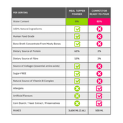 Use as a meal topper or gravy. Adjust portions based on your dog's weight, age, and activity level. Always provide fresh water alongside meals.