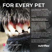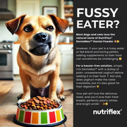 NutriFlex DentaMax Dental Powder is a natural, vet-approved dental supplement for dogs and cats, designed to clean teeth, remove plaque, reduce tartar, and freshen breath without brushing. Suitable for pets from 12 weeks old, it supports overall oral hygiene and long-term dental health.