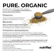 Formulated with organically sourced Ascophyllum nodosum (Norwegian kelp), DentaMax delivers powerful bioactive compounds, including Fucoidans and Polyphenols, that work systemically through saliva to eliminate harmful bacteria, prevent tooth decay, and reduce plaque and tartar accumulation. It promotes visibly whiter teeth, cleaner gums, and fresher breath within 3–12 weeks of daily use.