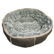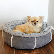 Soft plush donut bed in grey, designed for cats and small dogs. Stylish, cozy & machine washable for everyday comfort.