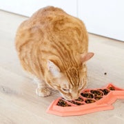 Fun fish-shaped cat slow feeder mat. Reduces bloating, aids digestion, and keeps mealtime healthy. BPA-free, non-slip, and easy to clean.