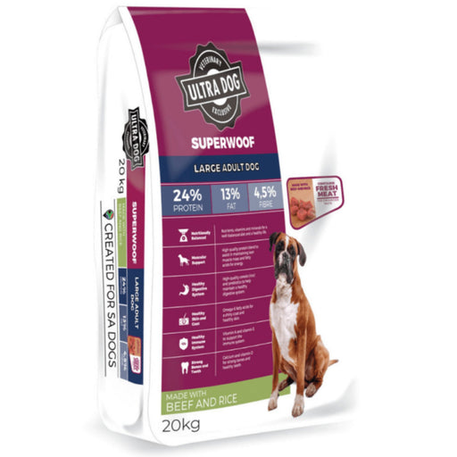 Ultra Pet Superwoof Large Adult Dry Dog Food is a complete, balanced diet formulated for active large breed dogs to support sustained energy, muscl...