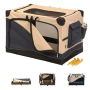 Spacious, soft-sided travel crate with 4 doors, water-resistant cover & storage pockets. Ideal for pets up to 40.8kg.