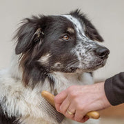 The Mikki Bamboo Anti-Tangle Rake is a sustainable grooming tool designed for pets with thick or double coats. Handmade from renewable bamboo, its dual-length rotating teeth reach deep into the undercoat to lift dead hair, remove knots and tangles, and leave the topcoat smooth and healthy.
