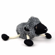 The Zugo Sheep Plush Toy is a soft, cuddly companion with rope legs for tug play, chewing, carrying, and interactive fun for playful dogs.