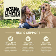 Acana Singles Free-Run Duck is a limited-ingredient, biologically appropriate food made with 50% free-run duck as its single animal protein source. Raised on trusted Ontario farms, the fresh duck arrives in WholePrey™ ratios of meat, organs, and cartilage to naturally deliver essential nutrients. Fresh pears, pumpkin, and squash provide fiber and support healthy digestion, making this recipe ideal for diet-sensitive and fussy dogs.