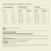 Daily portions vary based on your dog’s weight, age, and activity level. Always provide fresh water. Feed twice daily and adjust as needed to maintain optimal body weight.