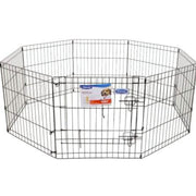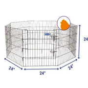 Petmate® Exercise Pens with Door offer your pet a secure and versatile space to play, rest, or stretch their legs—indoors or outdoors. Made from durable wire with a solid hinge design, each pen sets up effortlessly and folds flat for easy transport and storage. The built-in double-latch door allows for convenient access while keeping your pet safe and contained.