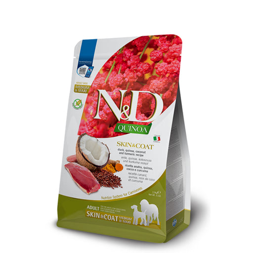 N&D Quinoa Skin & Coat Duck Mini is a grain-free, complete food made with free-range Italian duck, quinoa, coconut, and turmeric. This scie...