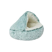 Ultra-soft Zugo Cozy Cave pet bed for cats and dogs. Enclosed design provides warmth, security, and comfort. Available in multiple sizes and colours.