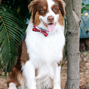 Dog’s Life Bow Tie – Plaid & Trees Red